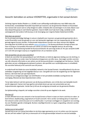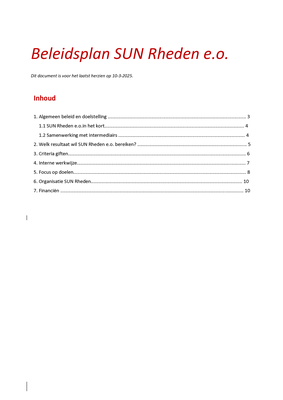 Na afloop van elk jaar zal hier het jaarverslag worden gepubliceerd. Het beleidsplan, inclusief bestuurssamenstelling, van SUN Rheden vindt u hier. Een overzicht van behandelde aanvragen vindt u hier.
